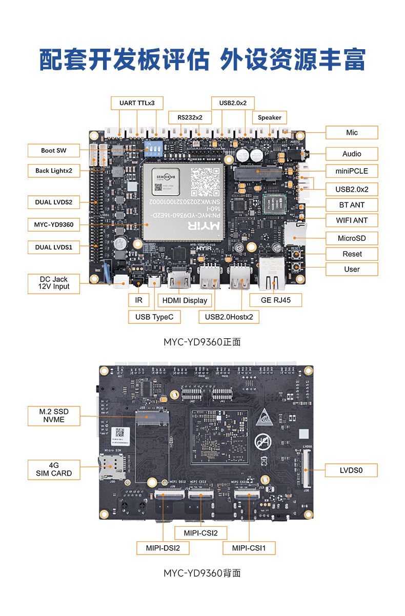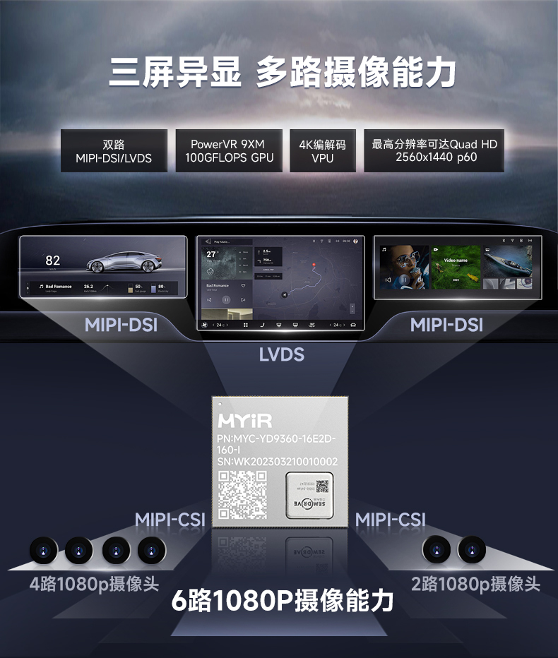 当今时代,以数字化、网络化、智能化为特征的第四次工业革命正在进行,伴随着国内汽车新能源的普及,加速了国产高安全芯片的快速发展,d9360是芯驰推出的一款六核cpu的高度集成、低功耗化、高安全性芯片,采用aec-q100车规级芯片工艺,并且通过iso26262 asil_b功能安全认证,是国产高性能芯片的代表作。米尔电子与芯驰科技(semidrive)强强联合,基于芯驰d9-pro高性能国产工业处理器共同推出米尔myc-yd9360核心板及开发板,赋能新一代车载智能、电力智能、工业控制、新能源、机器智能等行业发展,满足多屏的显示需求。